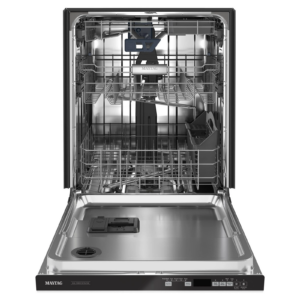 Skip soaking, scrubbing and pre-rinsing with Maytag engineering that puts an end to pre-work. Industry-exclusive Dual Power Filtration combines 100% microfiltration and a 4-blade stainless steel chopper to filter out then dispose of any food in its path.