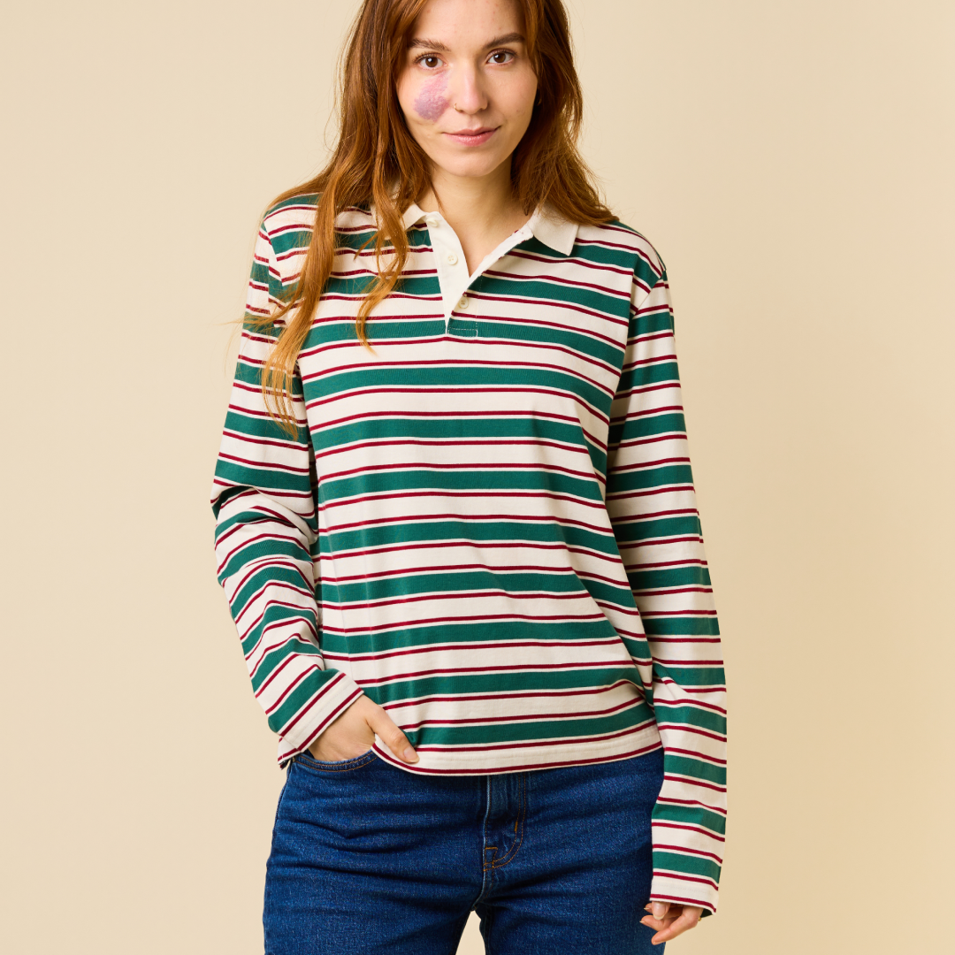 Poloshirt Gestreift aus Bio-Baumwolle in Dunkelgrün/Bordeaux